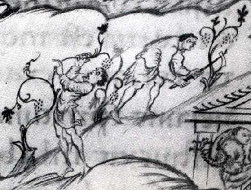 Opnieuw de bezigheden in de wijngaard. Nu uit een Engelse kopie uit ca. 1000.
