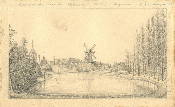 ‘RG, 10 aug 40, des Av 7”Dirk Boele (Archief Kampen). Gezicht op de Broederpoort en het nieuwe plantsoen.