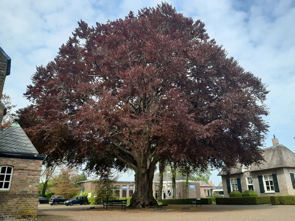 De bruine beuk op het plein van de Nicolaaskerk te Wesepe (Foto: visscher52 op www.monumentaltrees.com)