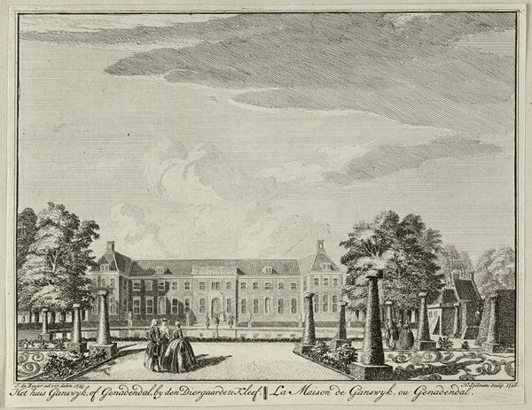 Gezicht op Het huis Ganswyck, of Genadendal, by den Diergaarde te Kleef.