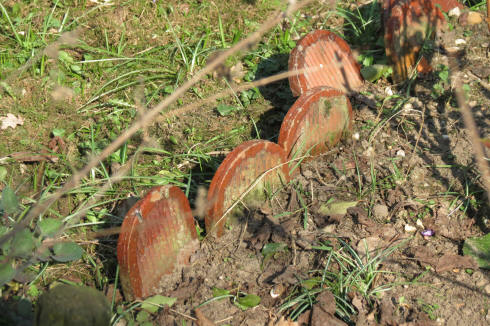 Perkhekjes op uitsnede van foto met mozaïekperk in voormalige tuin in Veghel.